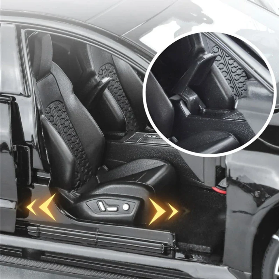 PiterAudi™ to realistyczny model sportowego Audi RS7 w skali 1:18, stworzony dla dzieci i fanów motoryzacji, którzy kochają emocje, dźwięk silnika i efektowne światła. To zabawka klasy premium – solidna, szczegółowa i zaprojektowana tak, aby dawać maksymalną radość z zabawy.